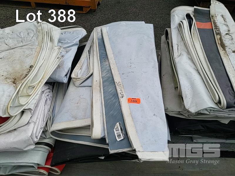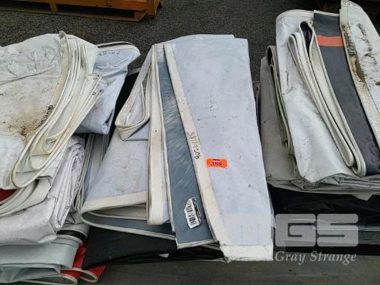5 x ASSORTED, HEAVY DUTY ADVERTISING TARPS, UNKNOWN SIZES