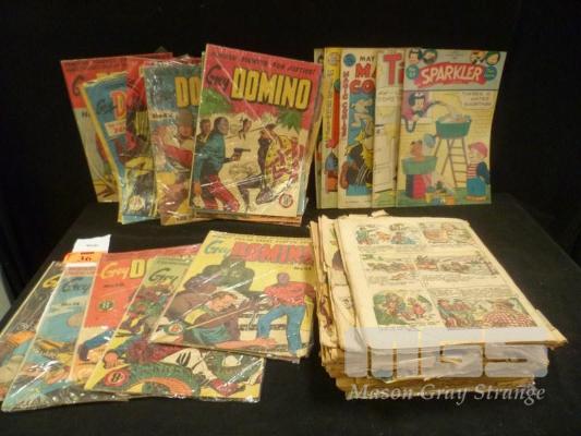ASSORTED MID CENTURY COMICS INC GREY DOMINO, CAPTAIN MARVEL, ETC (MOST WITH COVERS MISSING)