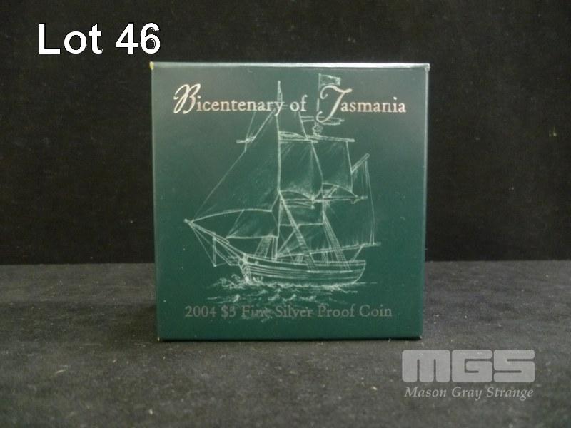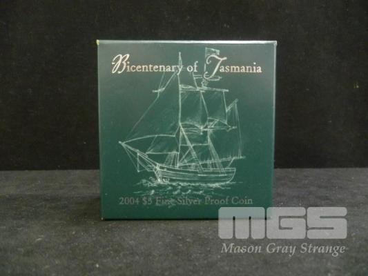 2004 $5 1 TROY OZ PROOF FINE SILVER "BICENTENARY OF TASMANIA" COIN