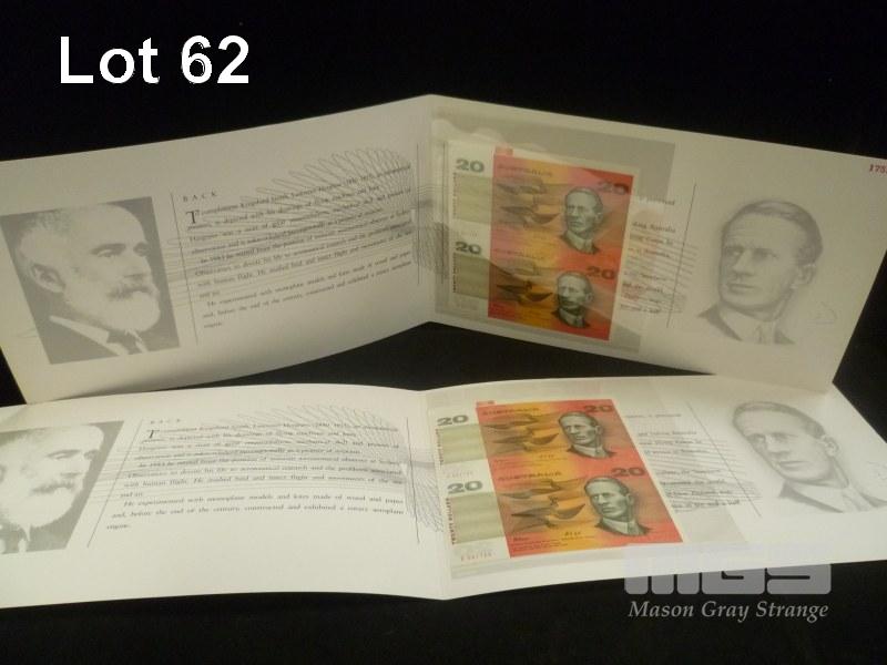 1991 2 x $20.00 NOTE UNCUT PAIR CONSECUTIVE FOLDER(2 FOLDERS) RARE RED PREFIX