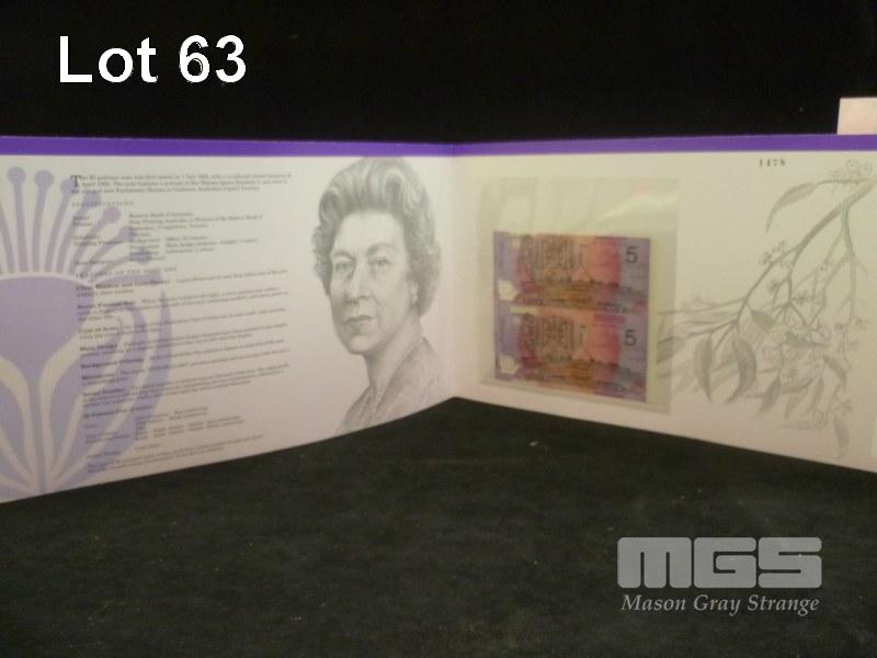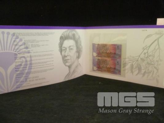 1996 $5.00 NOTE UNCUT PAIR CONSECUTIVE PAIR IN FOLDER UNC