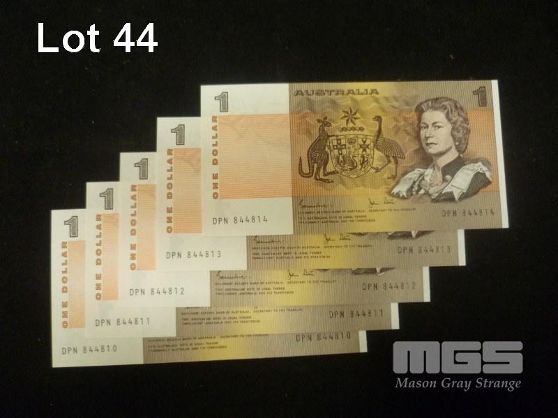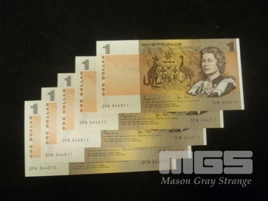 1982 5 x $1.00 NOTES CONSECUTIVE JOHNSTON STONE UNC