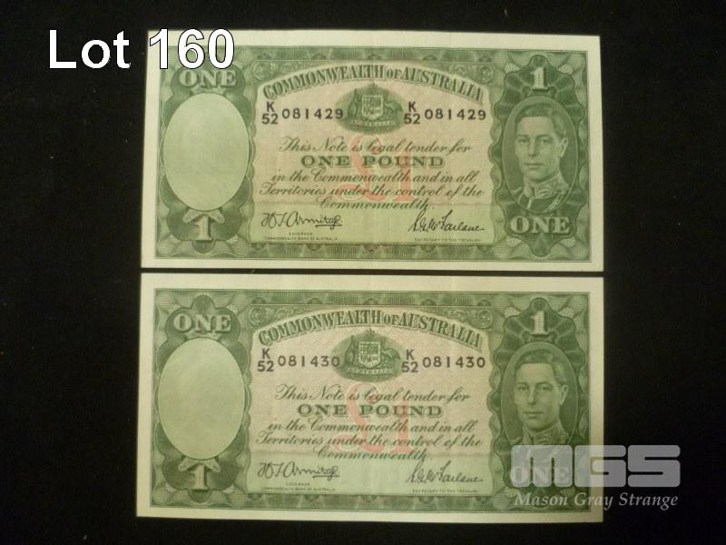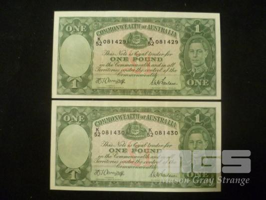 1942 2 x 1 POUND NOTE CONSECUTIVE ARMITAGE MCFARLANE