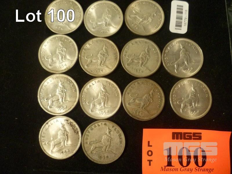 13 x AUSTRALIAN COMMEMORATIVE 1954 FLORINS