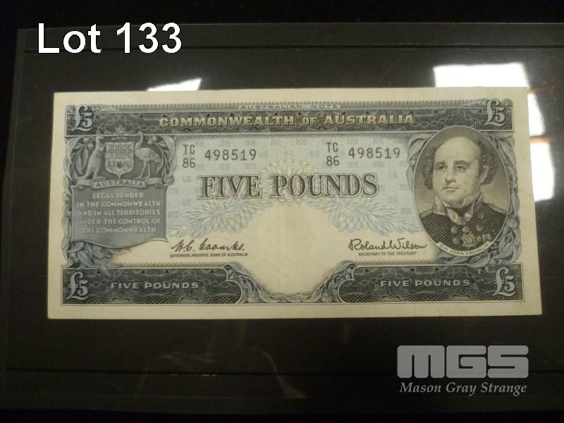 COMMONWEALTH OF AUSTRALIA, FIVE POUNDS, BANKNOTE, COOMBS/WILSON, TC86 498519, aUNC
