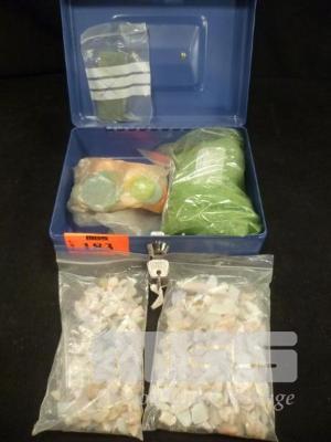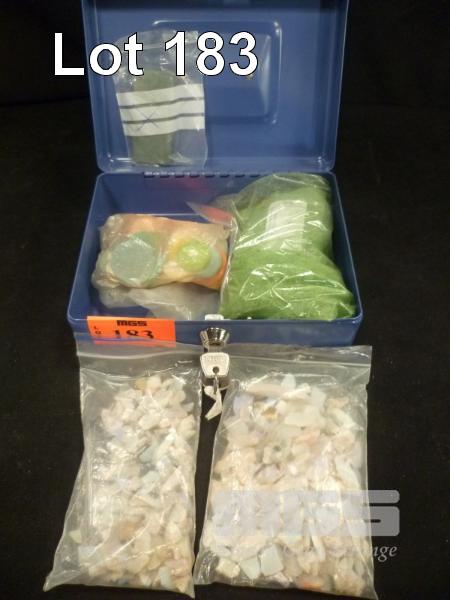BAGS OF OPAL CHIPS & LOCK BOX WITH OPAL POLISH