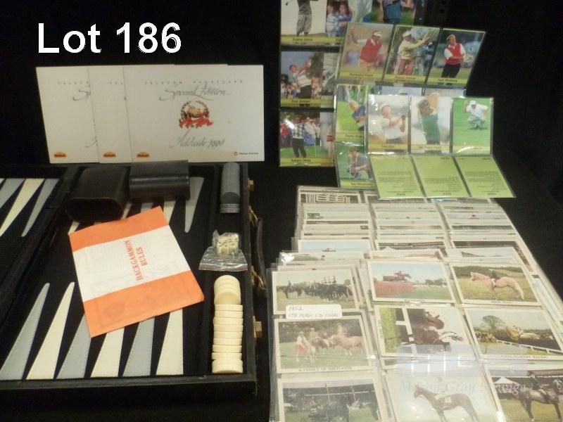 CIRCA 1950'S THE HORSE TRADING CARDS, GOLF TRADING CARDS, TELECOM PHONE CARDS & BACKGAMMON BOARD GAME