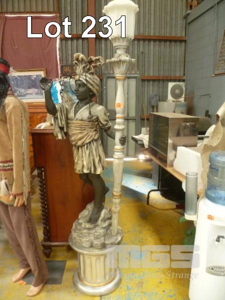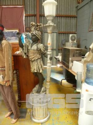 COMPOSITE FIGURAL INDOOR FEATURE LAMP CEREMONIAL YOUNG AFRICAN MAN HOLDING TORCH ON FLUTED PLYNTH TOTAL HEIGHT 220CM, 2 PIECE, PLYNTH HEIGHT 40CM