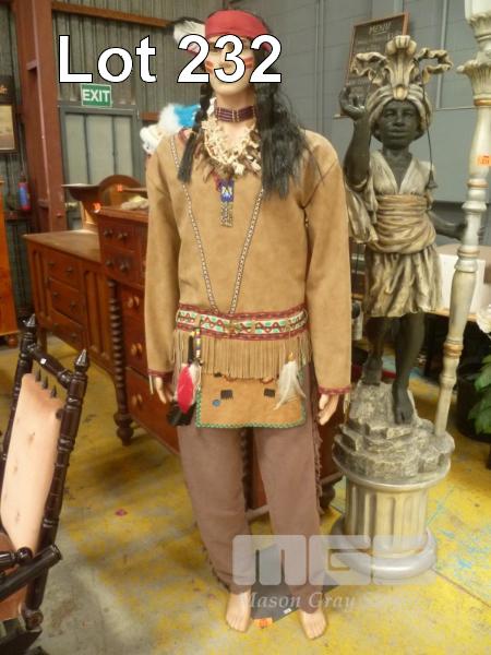 NATIVE AMERICAN INDIAN, SIOUX, CLOTHING WITH NECKLACES, HEAD DRESS & MANNEQUIN