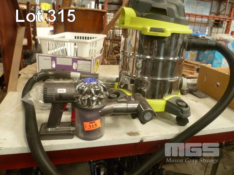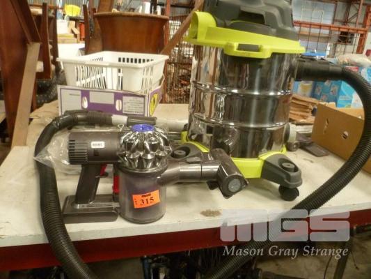 DYSON DC58 V6 TURBO CAR VAC WITH CHARGER, ACCESSORIES & RYOBI DRUM VACUUM CLEANER