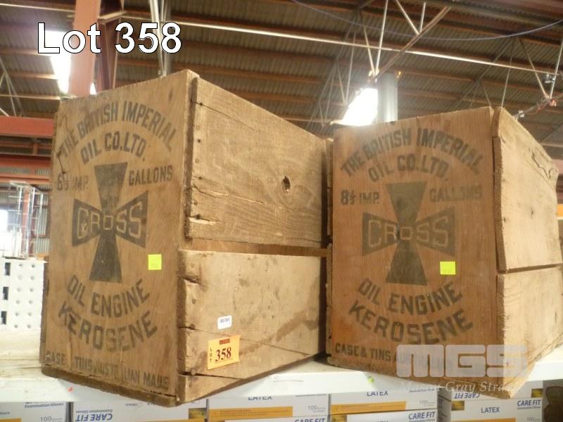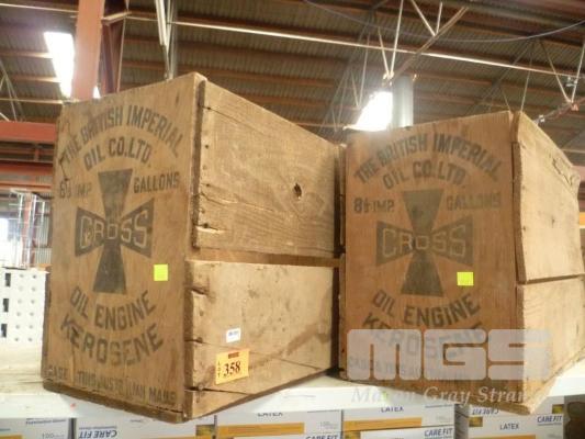 2 x PETRONALIA TIMBER CRATES, "THE BRITISH IMPERIAL OIL CO LTD" CROSS