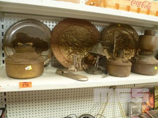 BRASS EMBOSSED PLATES, ROLL ROYCE PLATE, KEROSENE LAMP BASES, VANGUARD STAPLER & WALL SCONCE