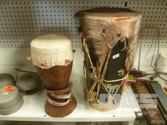 2 x VINTAGE TRIPLE BONGOS, 60 & 50cm (H)