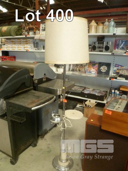 DECO STANDARD SMOKER STAND/LAMP, CHROME & BEIGE BAKELITE