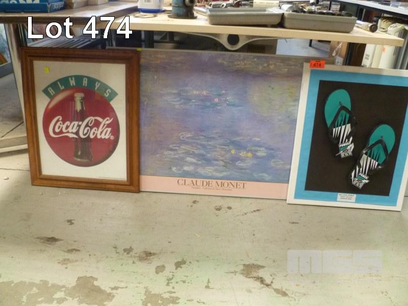 MONET FRAMED PRINT, COCA-COLA FRAMED PRINT & PORT POWER WALL ART