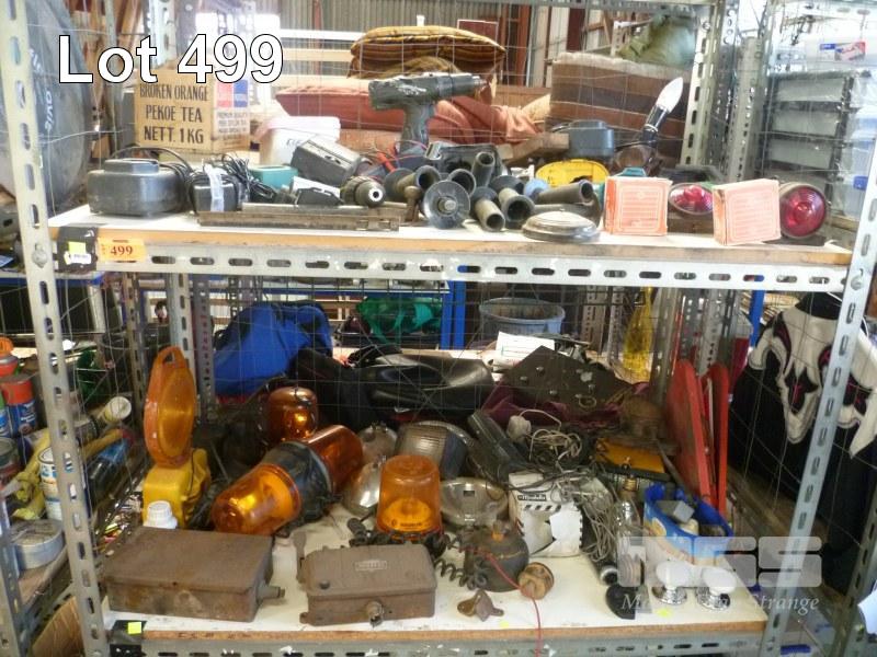 ASSORTED CORDLESS DRILLS, (NO BATTERIES), HANDLES, AUTOMOTIVE LIGHTING, ETC, 2 x BAYS