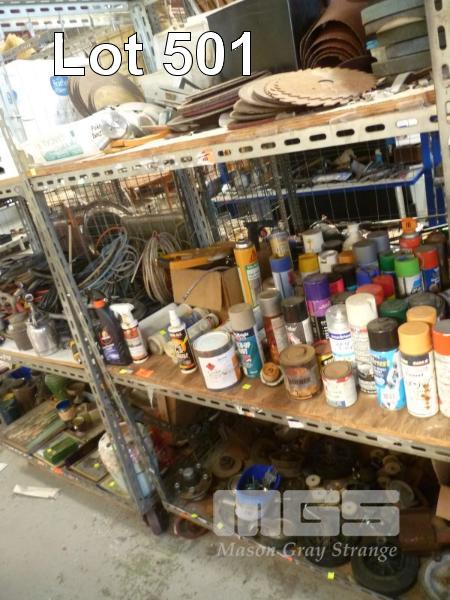 ASSORTED CUTTING/GRINDING DISCS, PART SPRAY CANS, SEALANTS, TROLLEY WHEELS, ETC, 3 x BAYS