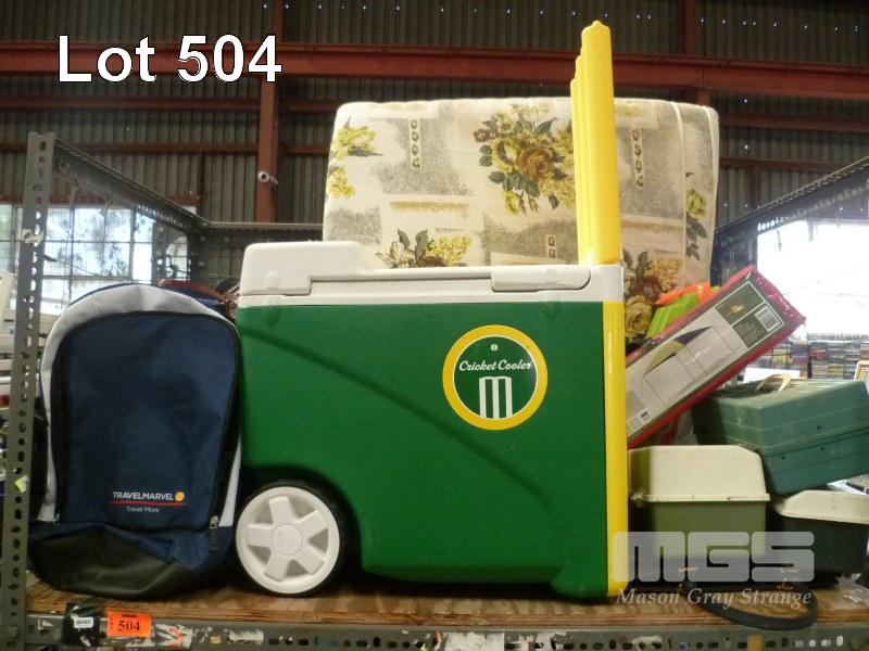 CRICKET COOLER, GAZEBO, TACKLE BOXES & ASSORTED CAMPING GEAR