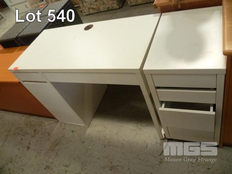 WHITE LAMINATE DESK WITH MACHING MOBILE DRAWER UNIT