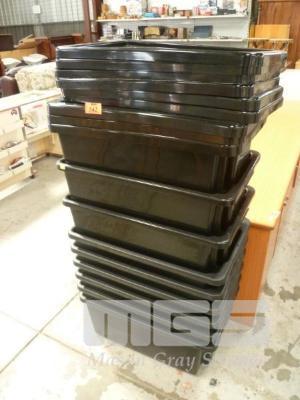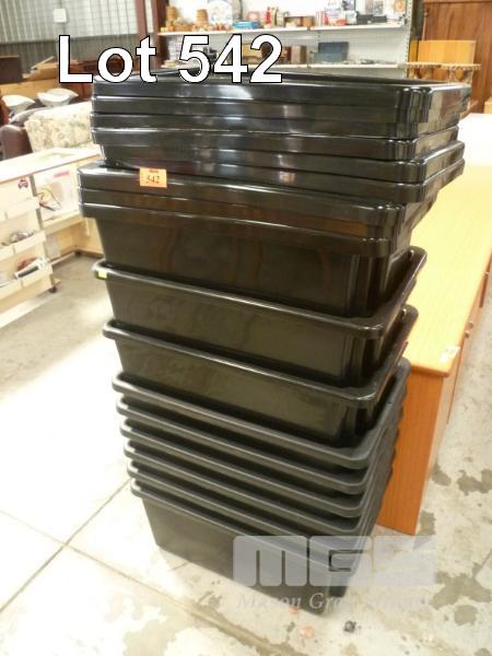 9 x BLACK STORAGE CONTAINERS WITH LIDS