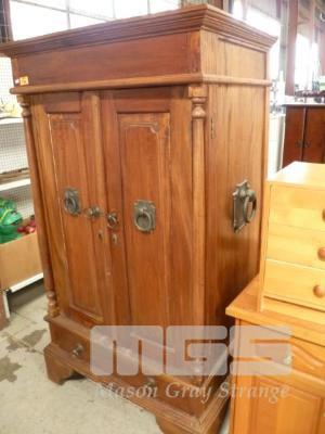GOTHIC STYLE PINE WARDROBE, 2 DOOR, SINGLE DRAWER, (1 x DOOR SPLIT)