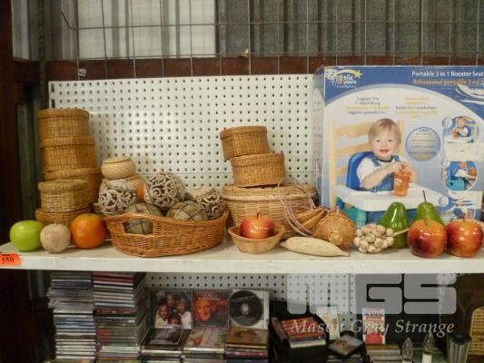 ASSORTED CANE CONTAINERS, HOME DECOR & 3 + 1 BOOSTER SEAT