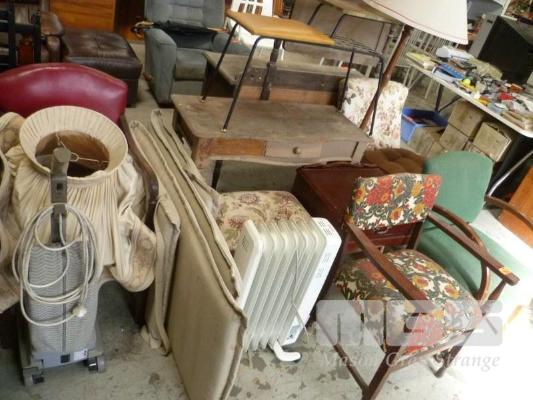 ARM CHAIRS, STANDARD LAMP, PHONE TABLE, ETC