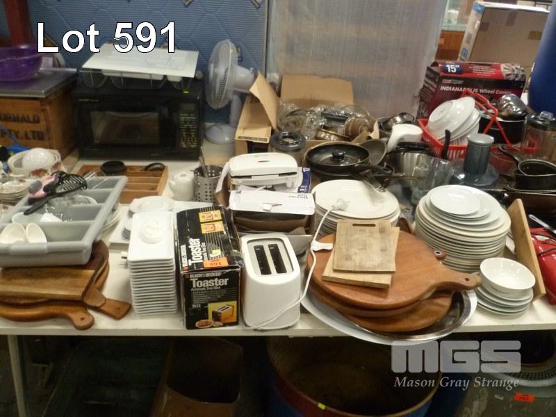 ASSORTED KITCHENWARE, APPLIANCES, DINNERWARE, ETC, 1 x TABLE