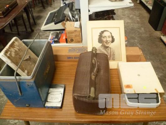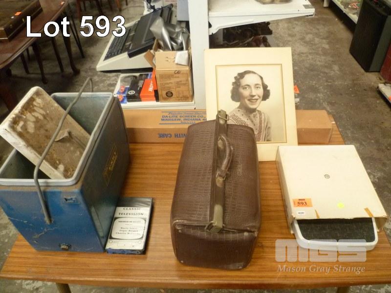 GLADSTONE BAG, VINTAGE ESKEY, VINTAGE PHOTOGRAPH, SCALES & PROJECTOR SCREEN