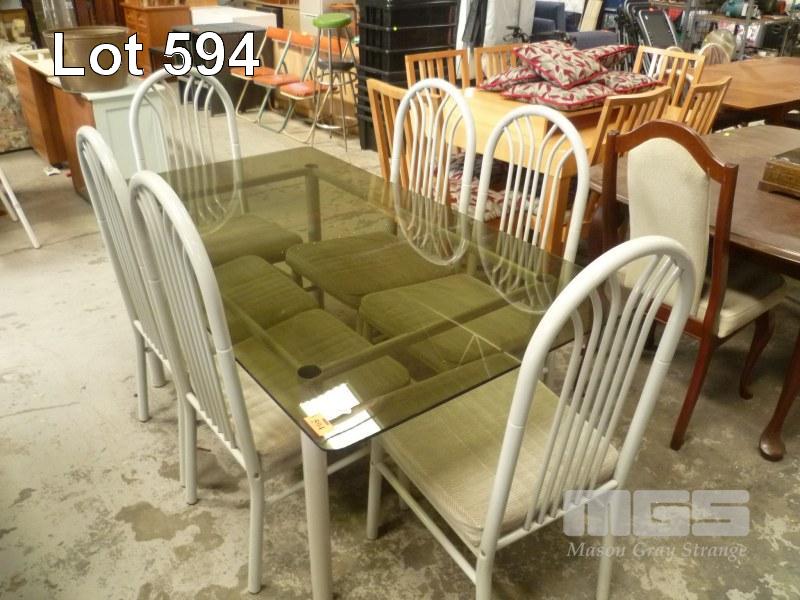 GLASS TOP DINING TABLE & 6 x CHAIRS