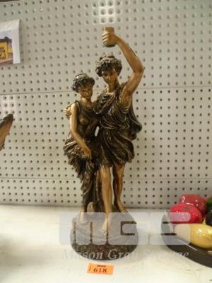 COMPOSITE STATUE ROMAN LOOKING GUY HOLDING TORCH WITH FEMALE FRIEND