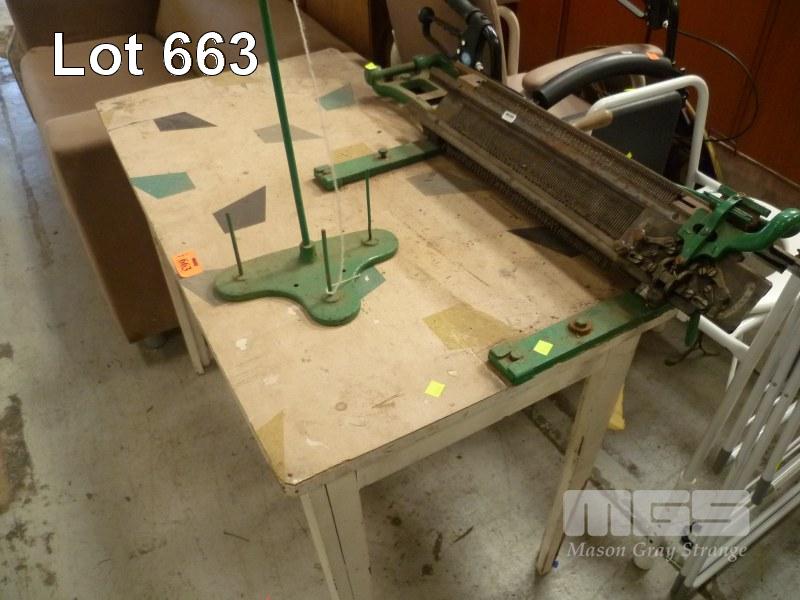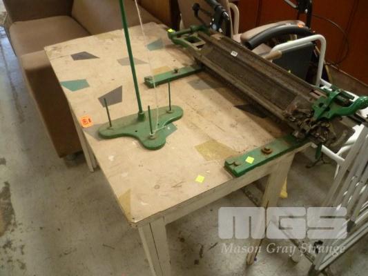 VINTAGE KNITTING MACHINE, ATTACHED TO TABLE