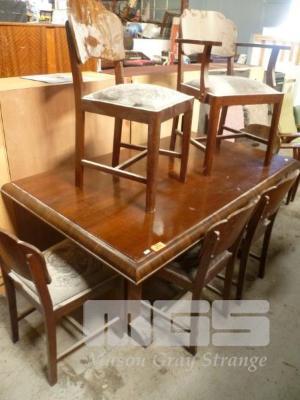ART DECO 7 PIECE DINING SUITE INC RECTANGULAR TABLE, 1 x CARVER CHAIR & 5 x DINING CHAIRS