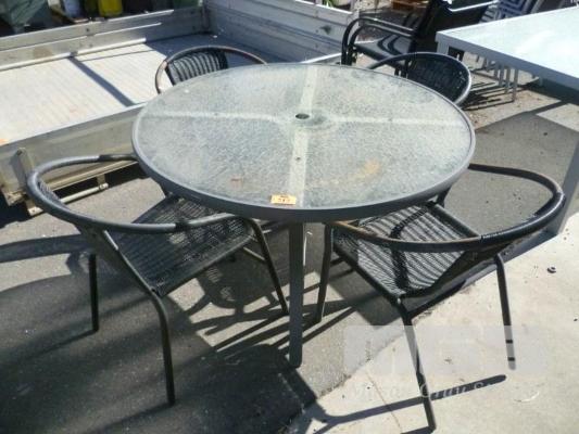 ALUMINIUM FRAME 3 PIECE OUTDOOR SETTING, ROUND GLASS TOP TABLE & 4 x CHAIRS