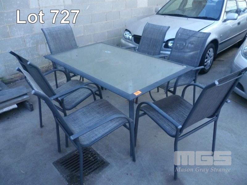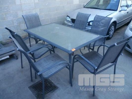 ALUMINIUM FRAME 7 PIECE OUTDOOR SETTING, RECTANGULAR GLASS TOP TABLE & 6 x CHAIRS