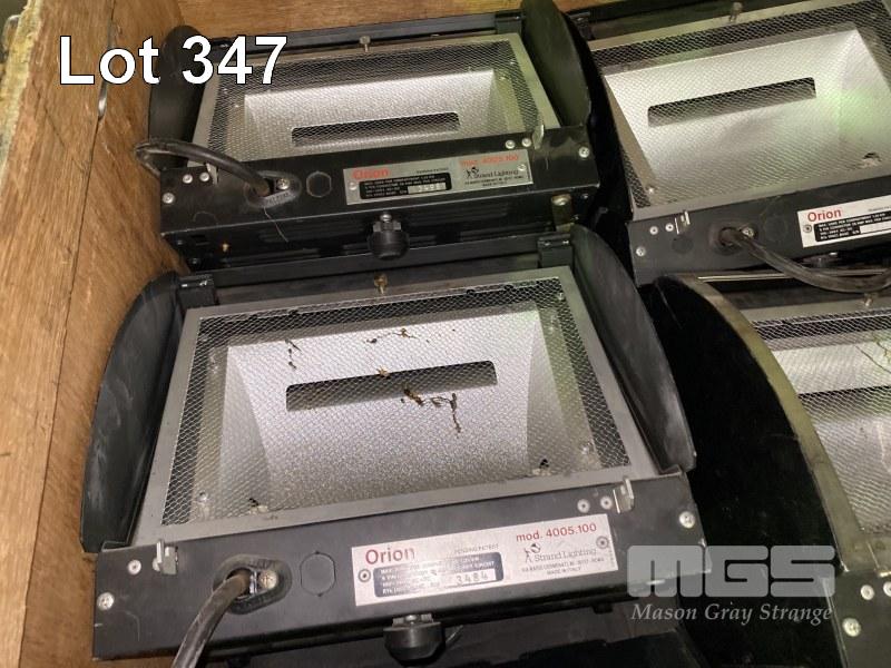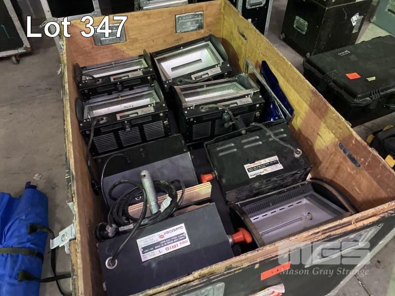 LARGE HEAVY DUTY ROADCASE WITH 17 GROUND ROWS - 13 x STRAND ORION - 2 x STRAND NOCTURNE - 2 x QUARTZCOLOR MINI IRIS