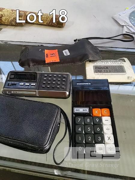 CASIO "COMPUTER QUARTZ CQ1" ALARM CLOCK STOPWATCH CALCULATOR. CLASSIC HANIMEX POCKET CALCULATOR (BC 80) WITH COVER.