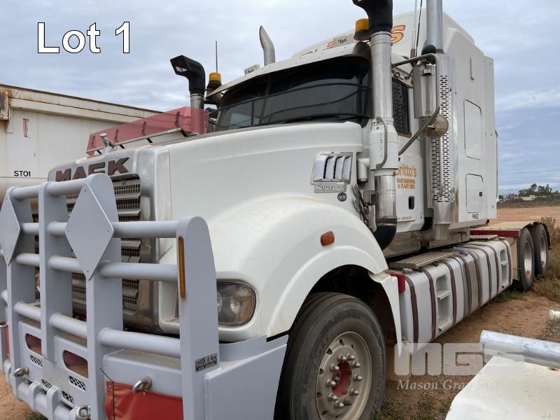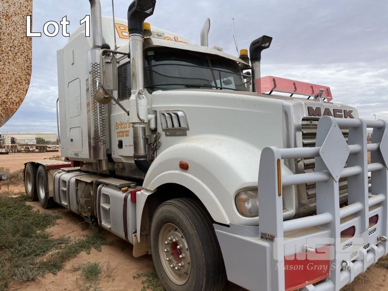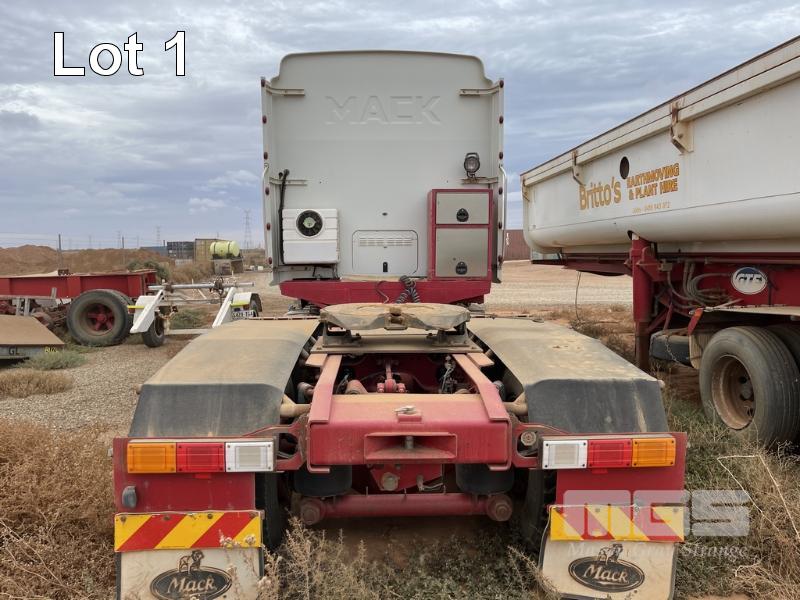 2013 MACK SUPERLINER CLXT 6x4 PRIME MOVER REG: 1GAF 371 (WA) VIN: 6FMT14H37DD804344 ODO: 750,00kms MP10 600HP, AUTOMATIC TRANSMISSION, AIRBAG SUSPENSION, AIR CON, ROAD TRAIN RATING: 131,000 kg 60" SLEEPER ALLOYS HYDRAULICS BULL BAR