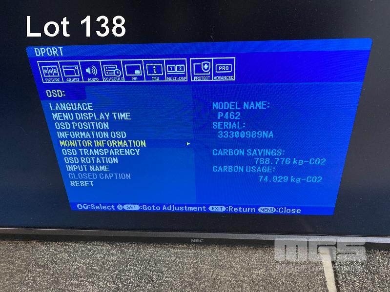 MONITOR, NEC MULTISYNC P462 46" LCD COMMERCIAL DISPLAY, HDMI INPUT (NO REMOTE, NO STAND) S/N:33300989NA