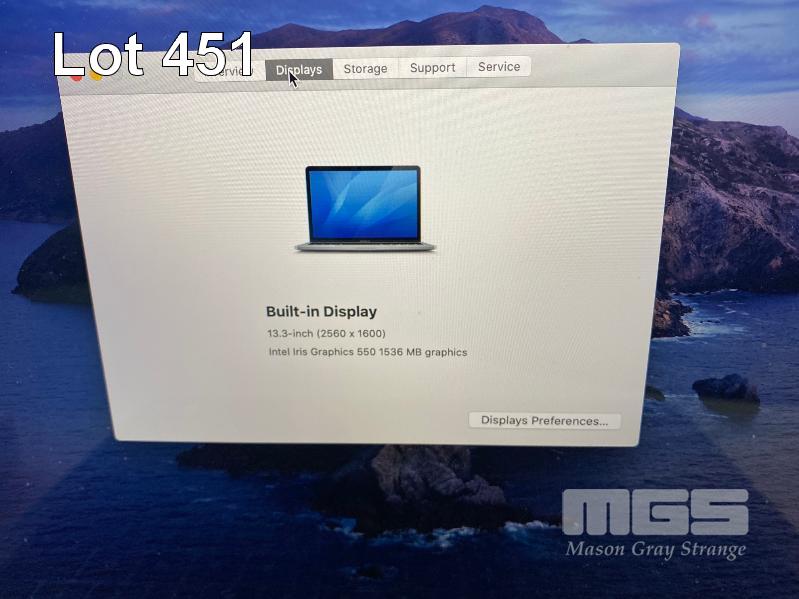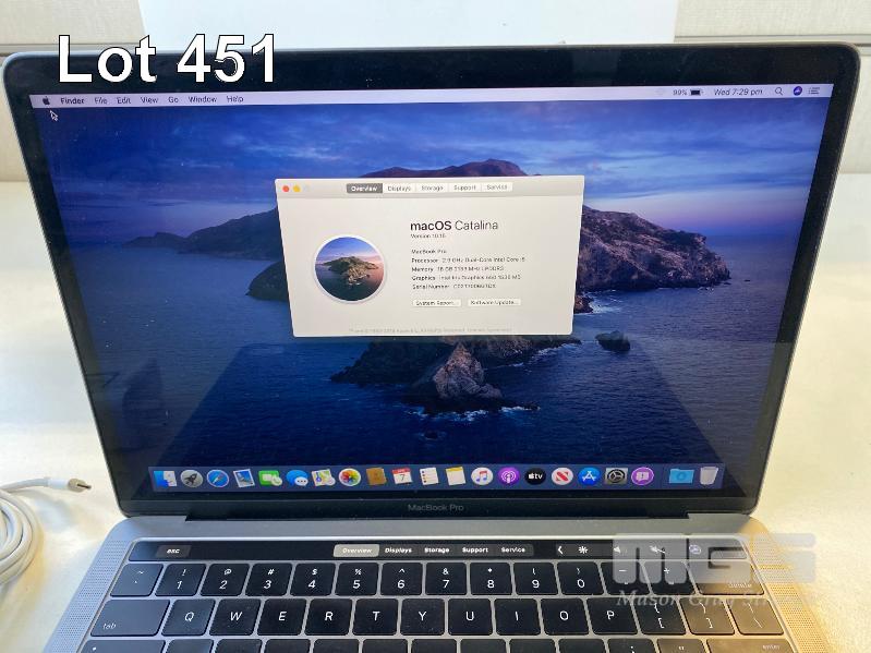 LAPTOP, APPLE MACBOOK PRO (A1706), CORE i5 6267U (6TH GEN) @ 2.9GHz, 16GB DDR3 RAM, 256GB SSD, 13.3" WIDESCREEN (2560x1600), INTEL IRIS GRAPHICS, TOUCHBAR, Wi-Fi, MAC OS 10.15 INSTALLED & POWER SUPPLY (NOTE: MINOR DAMAGE ON CASING) S/N:C02T7006GTDX