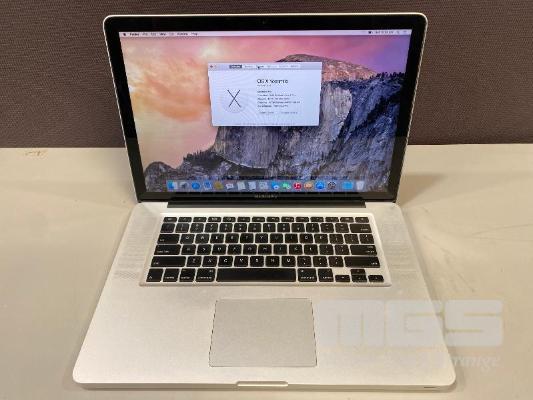 LAPTOP, APPLE MACBOOK PRO (A1286), CORE 2 DUO P8800 @ 2.66GHz, 4GB DDR3 RAM, 128GB SSD, DVD-RW, 15.4" WIDESCREEN (1440x900), 256MB NVIDIA GEFORCE 9400M VIDEO, Wi-Fi, MAC OS 10.10 INSTALLED & POWER SUPPLY S/N:W89490UD642