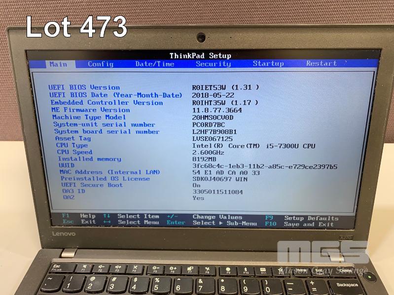 LAPTOP, LENOVO THINKPAD X270 (20HMS0CV0D), CORE i5 7300U (7TH GEN) @ 2.6GHz, 8GB DDR4 RAM, 256GB NVMe SSD, 12.5" WIDESCREEN (1366x768), INTEL HD VIDEO, Wi-Fi, BLUETOOTH, WINDOWS 10 PRO INSTALLED & POWER SUPPLY (NOTE: SCREEN FRAME LOOSE) S/N:PC0RD7BC