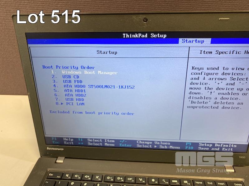 LAPTOP, LENOVO THINKPAD T450 (20BUS03705), CORE i5 5300U (5TH GEN) @ 2.3GHz, 8GB DDR3 RAM, 500GB SATA HDD, 14" WIDESCREEN (1366x768), INTEL HD VIDEO, Wi-Fi, BLUETOOTH, WINDOWS 10 PRO INSTALLED & POWER SUPPLY (NOTE: MARKS ON SCREEN) S/N:PC08ZJDZ