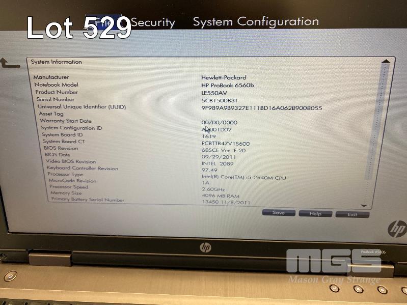 LAPTOP, HP PROBOOK 6560b (LE550AV), CORE i5 2540M (2ND GEN) @ 2.6GHz, 4GB DDR3 RAM, 250GB SATA HDD, DVD-RW, 15.6" WIDESCREEN (1366x768), INTEL HD VIDEO, Wi-Fi, BLUETOOTH, WINDOWS 7 PRO INSTALLED W/ LICENSE & POWER SUPPLY S/N:5CB1500B3T