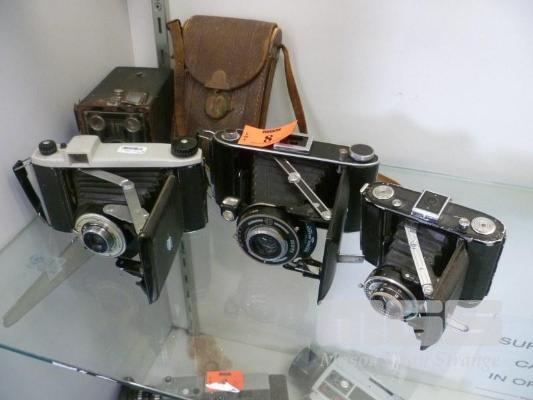4 x VINTAGE CAMERAS, ENSIGN SELFIX 420, ZEISS IKON KLIO, KODAK KODETTE III & KODAK BROWNIE