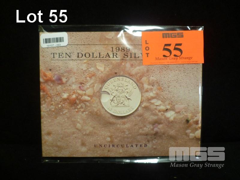 1992 $10 FINE SILVER STATE SERIES "QLD" UNC COIN
