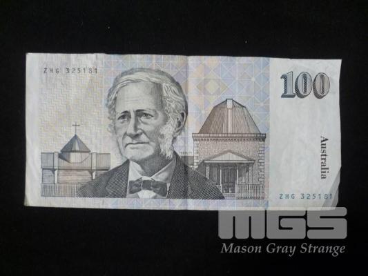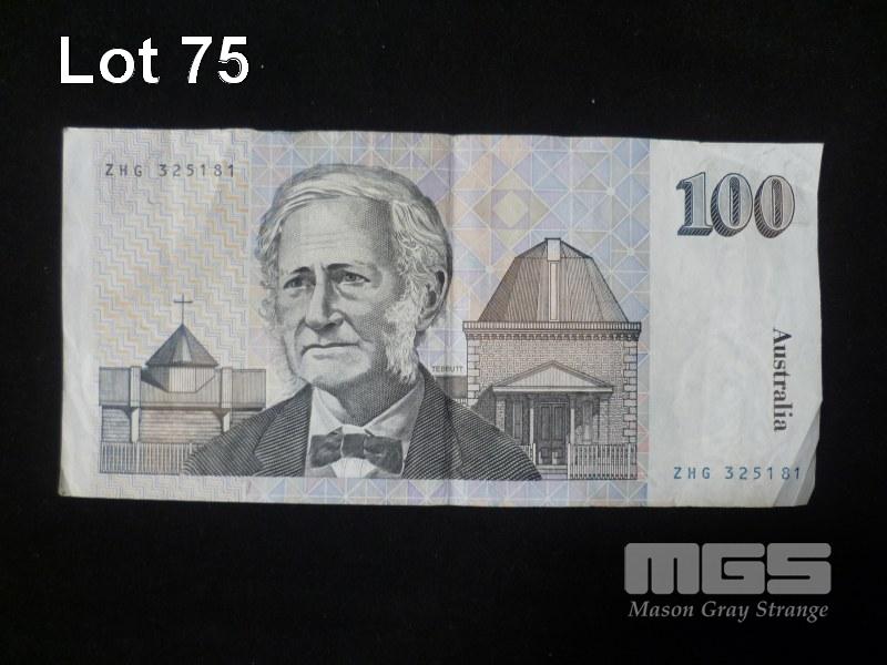 1992, AUSTRALIA, $100 PAPER BANK NOTE, FIRST SIGNATURE PREFIX, FRASER/COLE, ZHG 325181