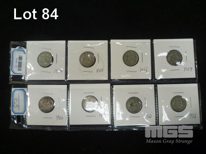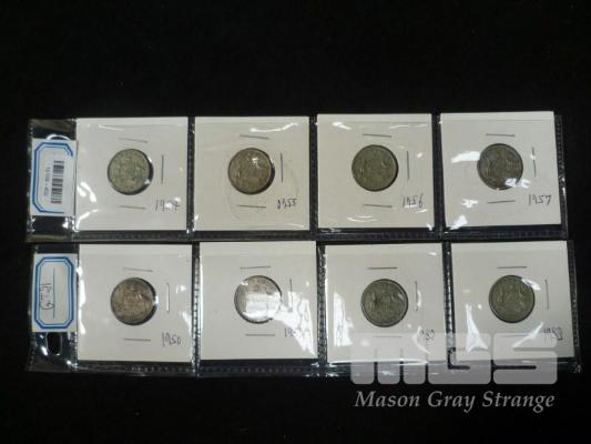 8 X AUSTRALIA SIXPENCE, INC; 1950, 1951, 1952, 1953, 1954, 1955, 1956, 1957