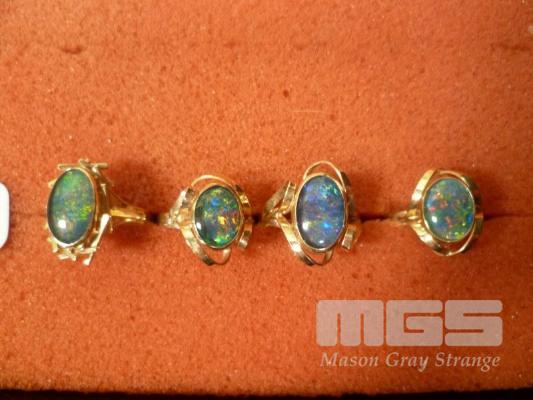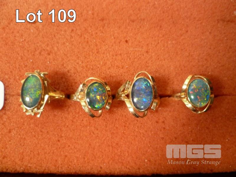 4 X GOLD RINGS, SET WITH OPAL DOUBLETS, ALL MARKED 9ct, TOTAL WEIGHT 11.31g