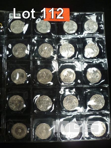 20 X AUSTRALIAN 50 CENT PIECES, 4 X ROUND 1966, 4 X 1969, 4 X CAPTAIN COOK 1970, 4 X 1971, 2 X 1972, 2 X 1977 SILVER JUBILEE, EF GRADE